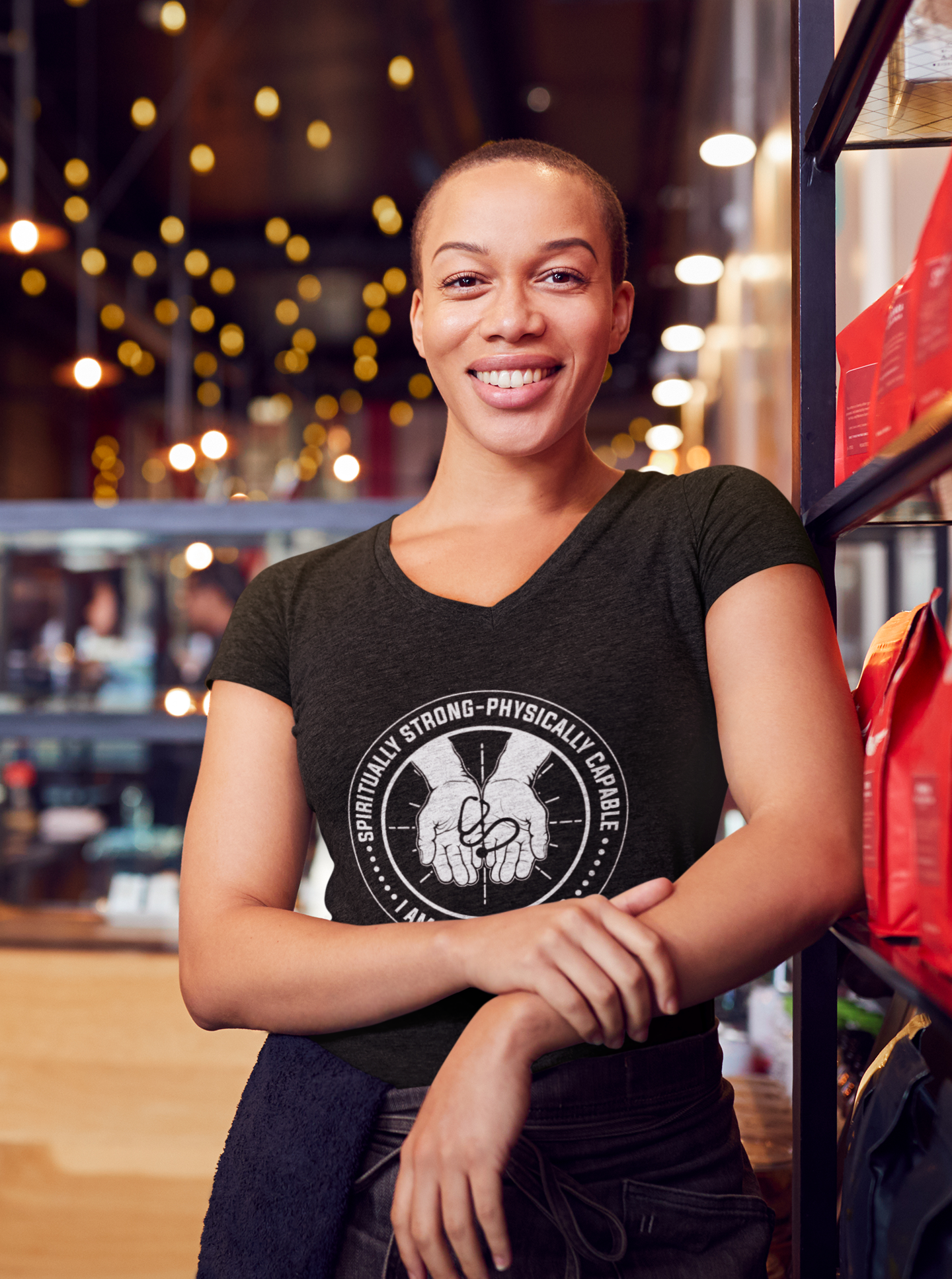 Spiritually Strong Physically Capable Short Sleeve V-Neck T-Shirt